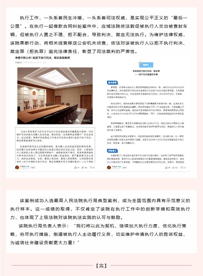 【喜报】应城法院一案例入选最高人民法院执行局“拒不执行判决、裁定”典型案例