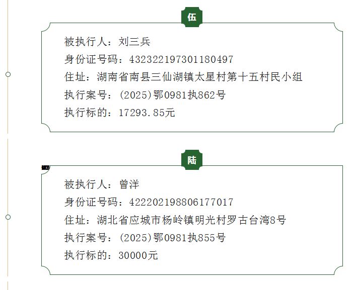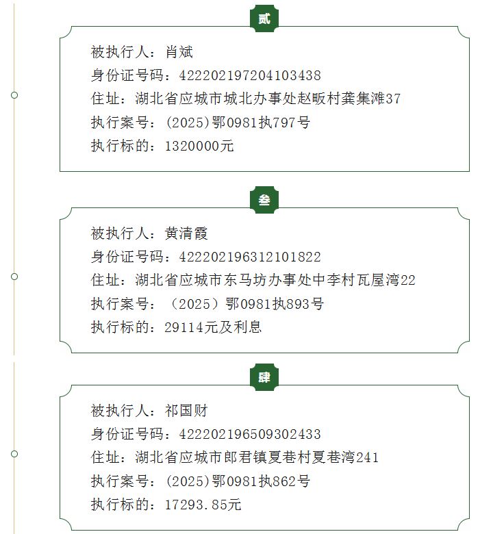 【曝光台】应城市人民法院2025年度失信被执行人名单第九期