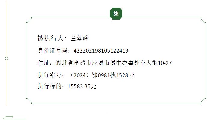 一、本期曝光的失信被执行人公布之后已履行义务的请及时与应城法院联系。