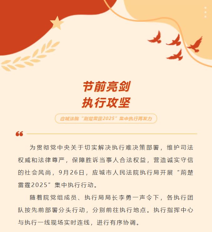 节前亮剑,执行攻坚丨应城法院“荆楚雷霆2025”集中执行再发力