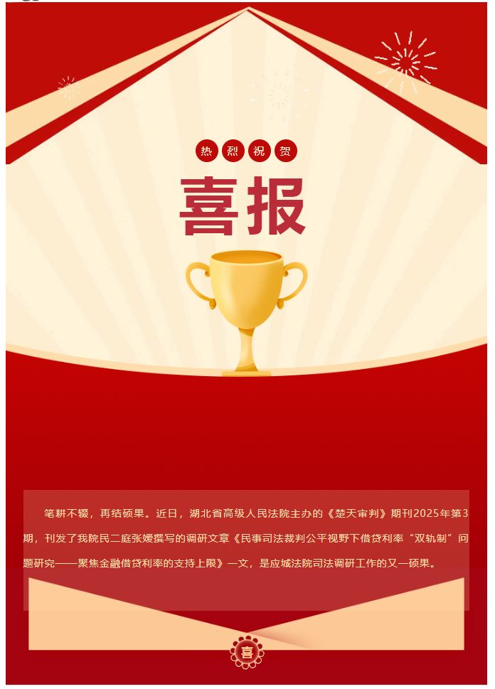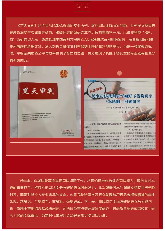 喜报|湖北高院《楚天审判》刊发应城法院民二庭张嫒调研文章