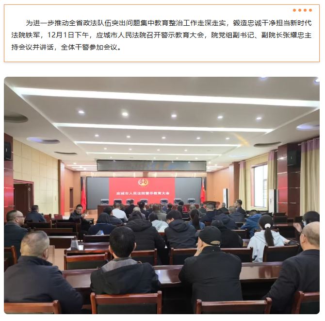 激浊扬清正当时 砺剑铸魂锻铁军丨应城法院召开警示教育大会