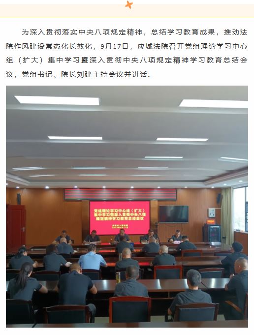 应城法院召开党组理论学习中心组(扩大)集中学习暨深入贯彻中央八项规定精神学习教育总结会议
