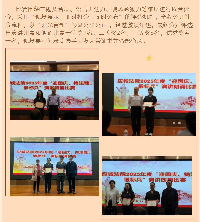 以奋斗献礼,用实干表白丨应城法院举办“迎国庆、铸法魂、锻标兵”主题演讲朗诵比赛