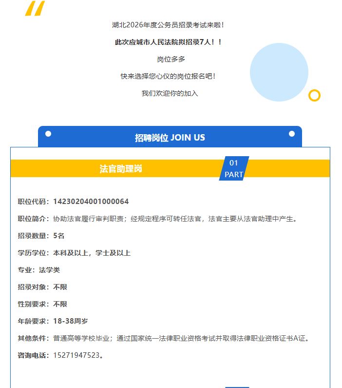 青春逐梦,“职”等你来 应城法院招录公务员7名,期待你的加入
