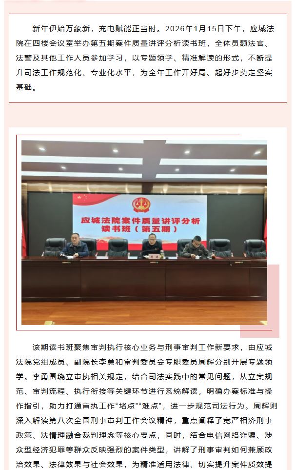 一场正当其时的“充电赋能”|应城法院举办第五期案件质量讲评分析读书班