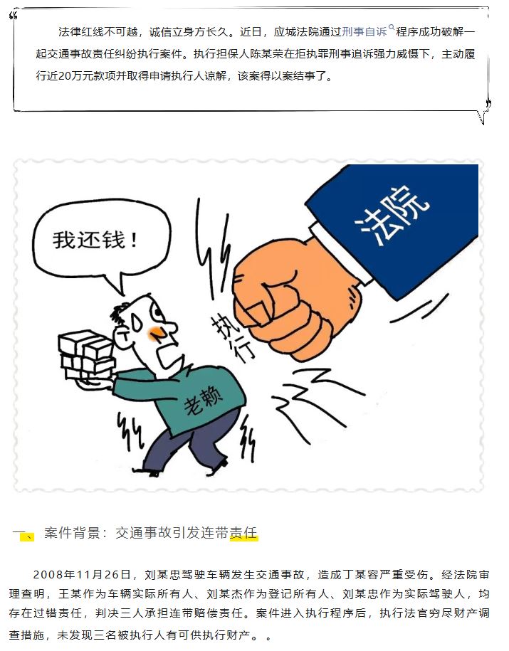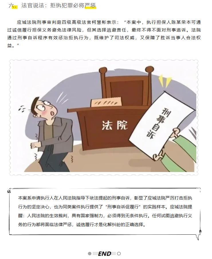 执行担保人拒不执行 刑事自诉促案结事了 应城法院以刑促执破僵局,近20万款项全额赔付