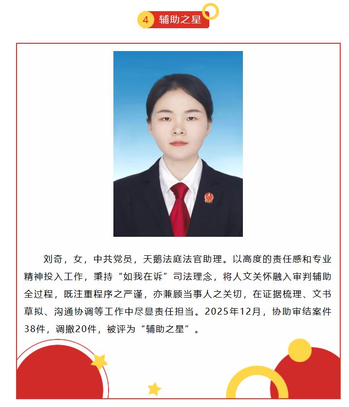 凡人微光,聚星成炬丨应城法院2025年12月“每月之星”揭晓啦