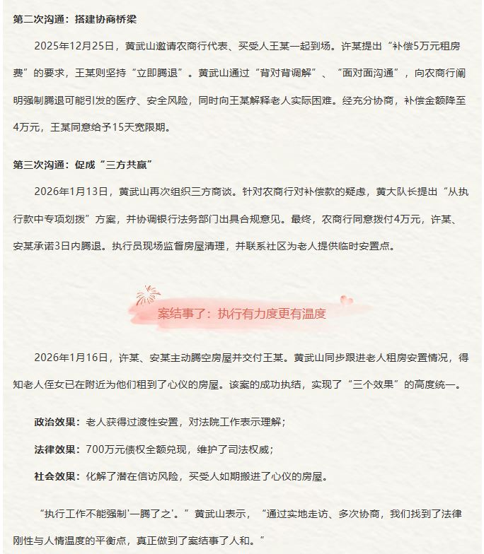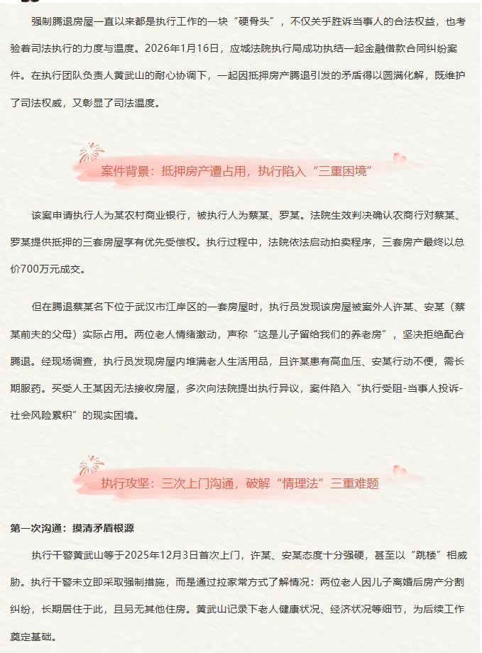 应城法院善意文明执行,房屋腾退“僵局”变“活局”